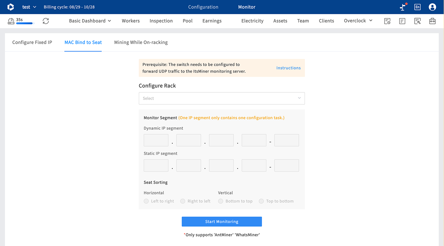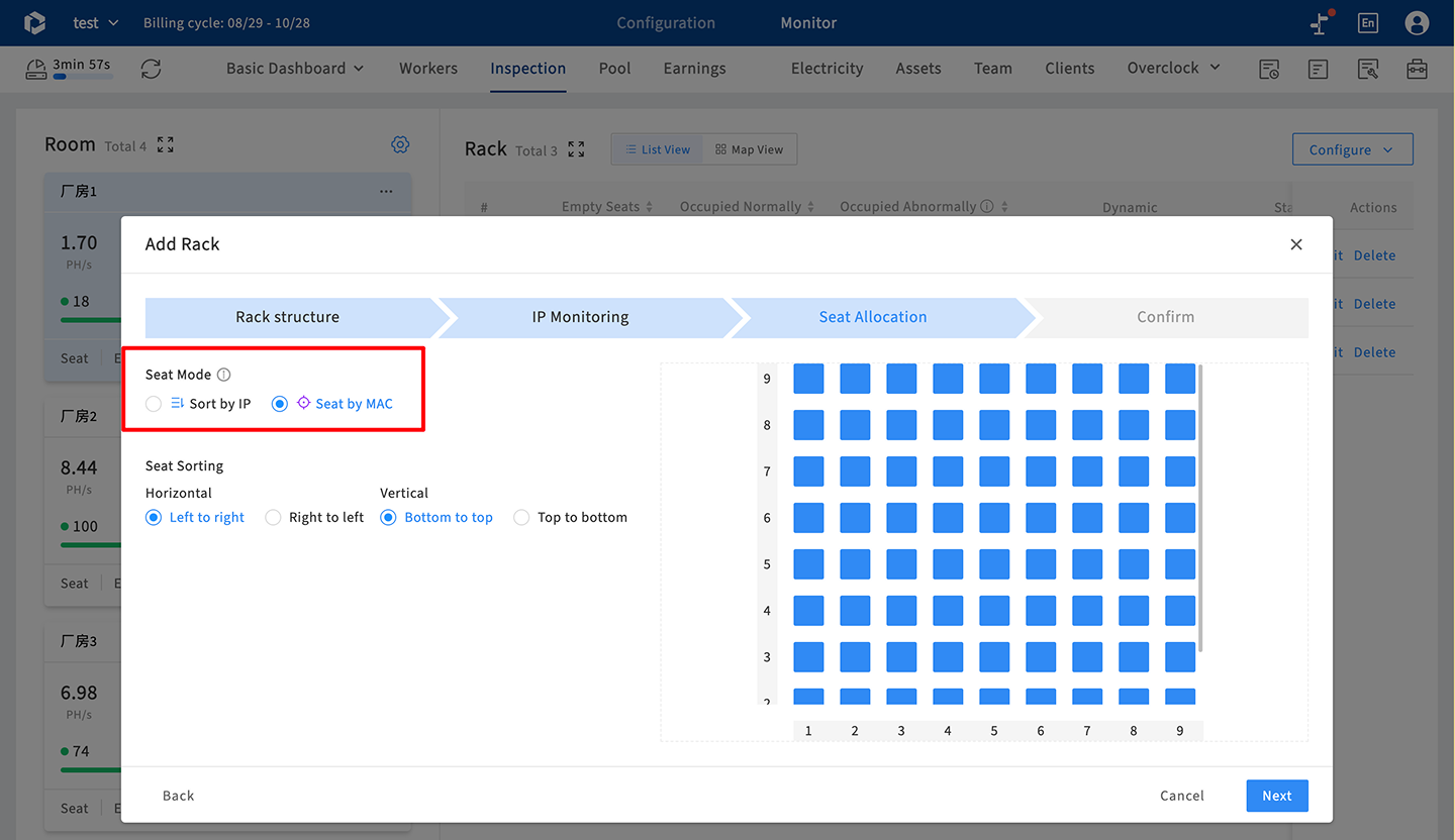 Yes. In the [Inspection] module, configure racks as “MAC address type.” Then, use the [Tools] → Bind MAC Address function for quick bulk configuration. You can also directly assign miners to rack slots in the [Inspection] module.